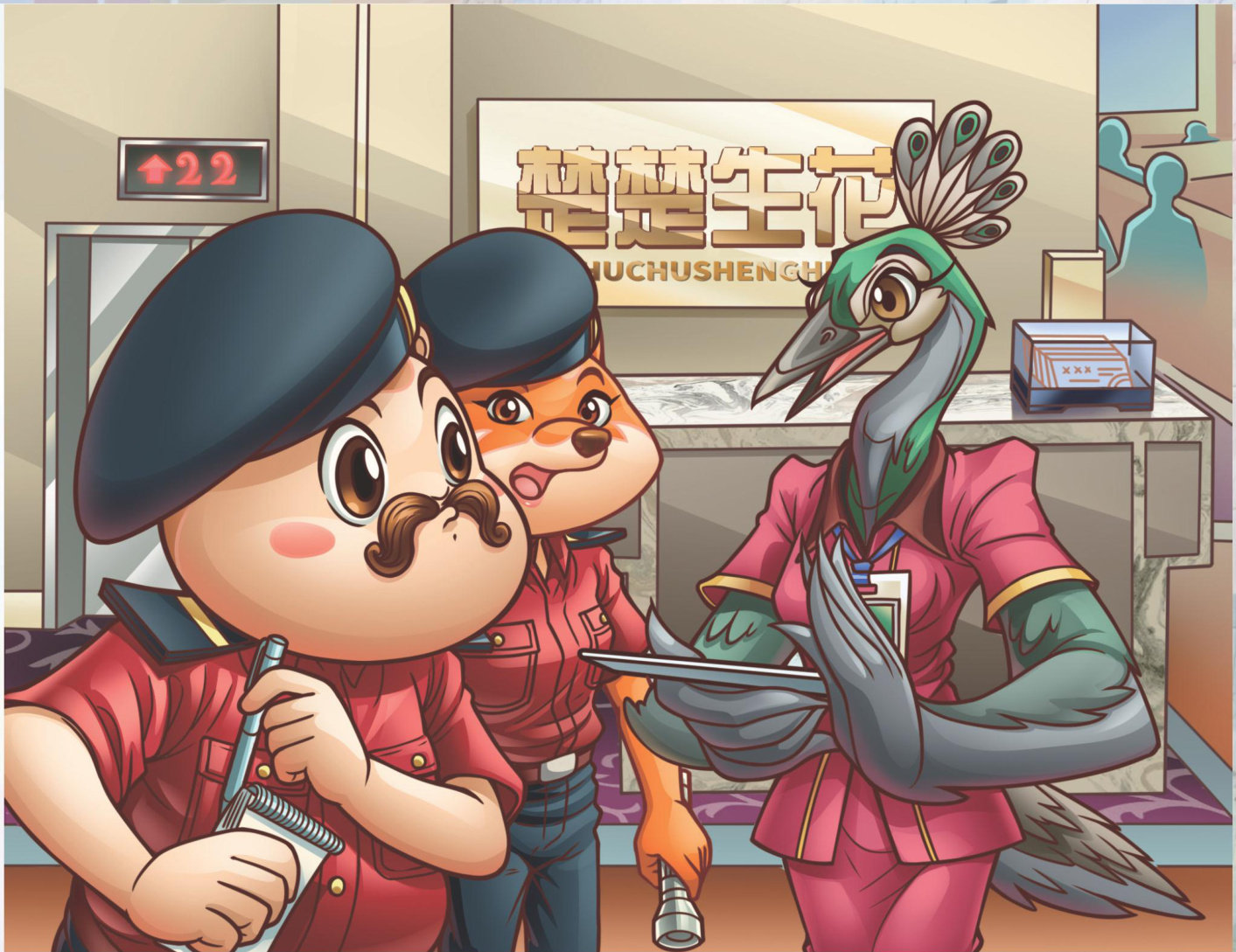 迎接哈姆斯和霍姬的是一位身材高挑的孔雀女士,她脖子上挂着的工牌上写着她的名字一一雷音,她是接待部的正式员工。