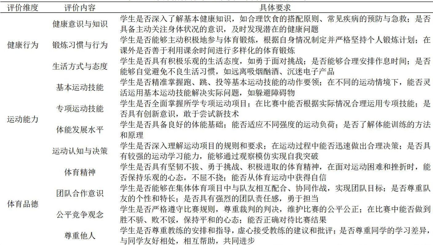 《义务教育体育与健康课程标准(2022年版)》将“运动能力、健康行为、体育品德”确立为体育学科核心素养的三大支柱,构建了“学练赛评”一体化的课程实施框架[]。其强调体育教学评价要围绕核心素养,注重构建评价内容多维、评价方法多样、评价主体多元的评价体系,实现核心素养的可视化诊断与发展性引导,促进学生达成课程目标[2]。(剩余3950字)