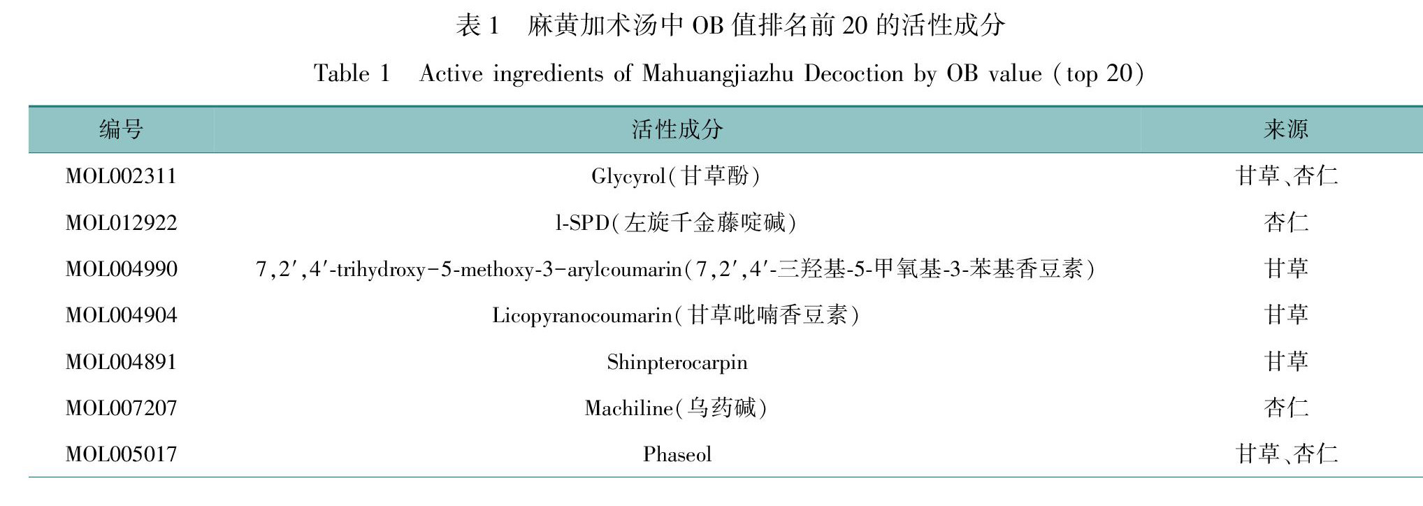 基于网络药理学和分子对接探究麻黄加术汤治疗类风湿关节炎的潜在作用机制
