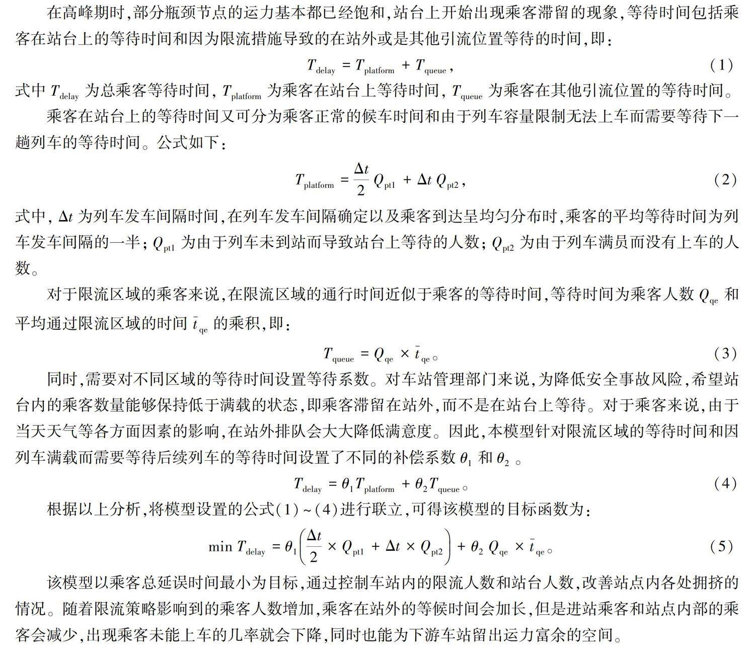 摘要: 针对部分高负载节点车站存在站台拥挤的问题,建立数学模型优化乘客的平均等待时间,制定相应限流策略。以乘客在车站各处的等待时间最小为优化目标,进站口单位时间的限流人数作为决策变量,通过乘客在车站中不同位置的行为特征,制定站台容量、列车容量、限流区域3个约束条件,同时设计了基于滚动时域控制的算法进行模拟计算。(剩余11550字)
