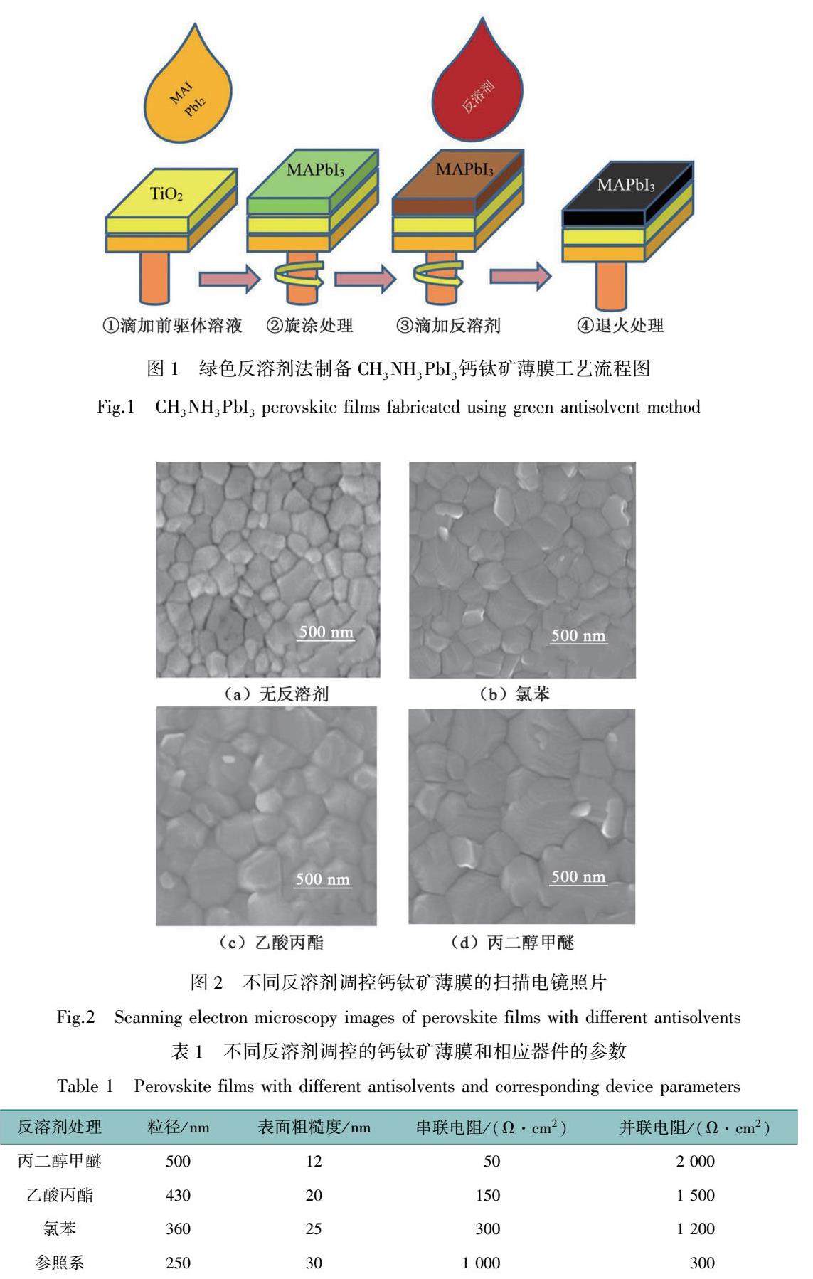 基于环境友好的绿色反溶剂法的高效CH3NH3PbI3钙钛矿太阳能电池