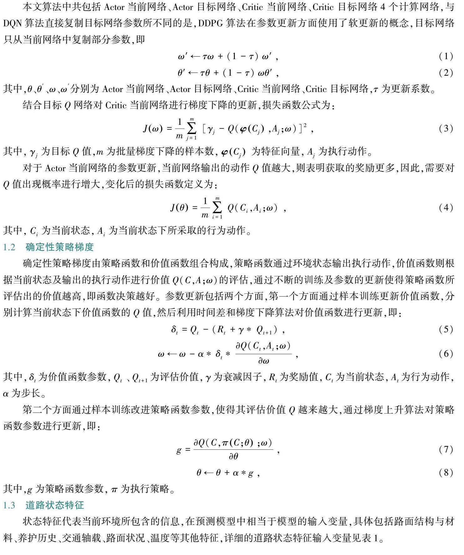 摘要:针对道路长期性能养护决策中庞大的数据分析问题,将深度确定性策略梯度(deep deterministic policy gradient, DDPG)强化学习模型引入到了养护决策分析中,将道路性能的提升及养护资金的有效利用作为机器学习的奖励目标,建立了一套科学有效的沥青路面长期性能养护决策方法,经过与DQN(deep Q-learning network)算法和Q-Learning算法进行对比,DDPG算法所需要的采样数据更少、收敛速度更快,表现更为优异,可有效提升道路服役性能的评估效率,对沥青路面多目标长期养护决策方案的制定起着重要的推动作用。(剩余7223字)