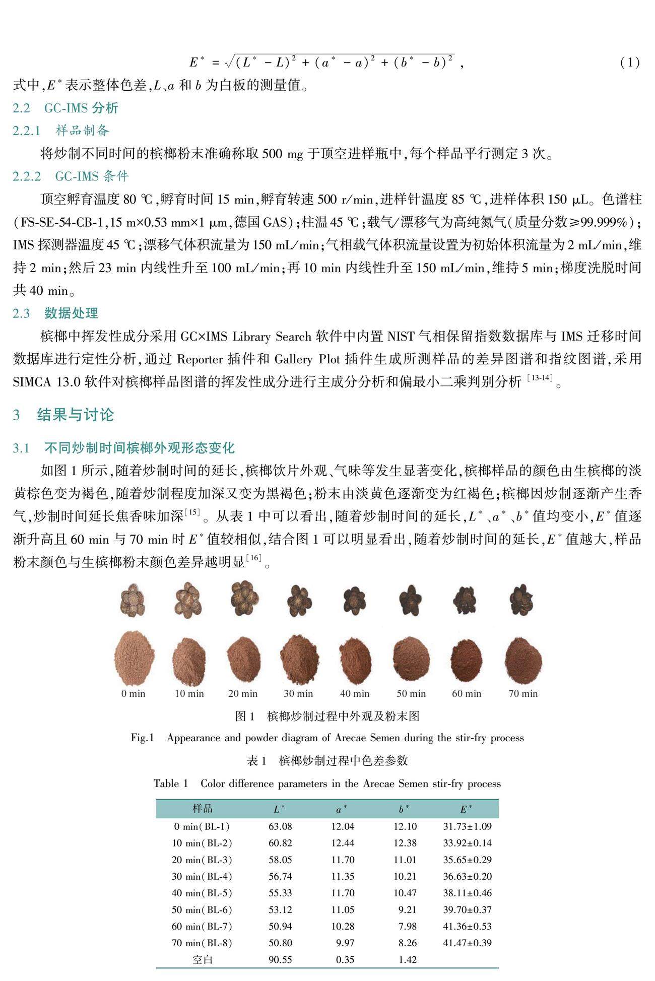 基于气相离子迁移谱的槟榔炒制过程中挥发性成分的变化研究