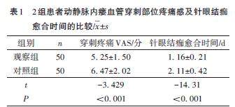 摘 要:目的:探讨红花酒精湿热敷联合激光治疗仪对维持性血液透析患者自体动静脉内瘘的影响。方法:选择2021年6月至2023年10月就诊于本院血液透析中心维持性血液透析门诊的首选自体动静脉内瘘作为透析的血管通路患者100例。按随机数字表法分为观察组和对照组,各50例,观察组患者在血液透析24 h后,护士使用红花酒精沿血管走向湿热敷30 min,再使用半导体激光治疗仪照射30 min。(剩余6287字)