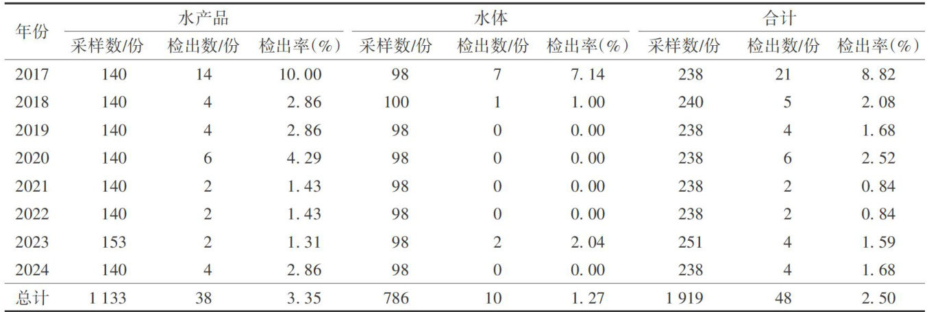 赣州市2017一2024年水产品和水体中霍乱弧菌监测结果分析