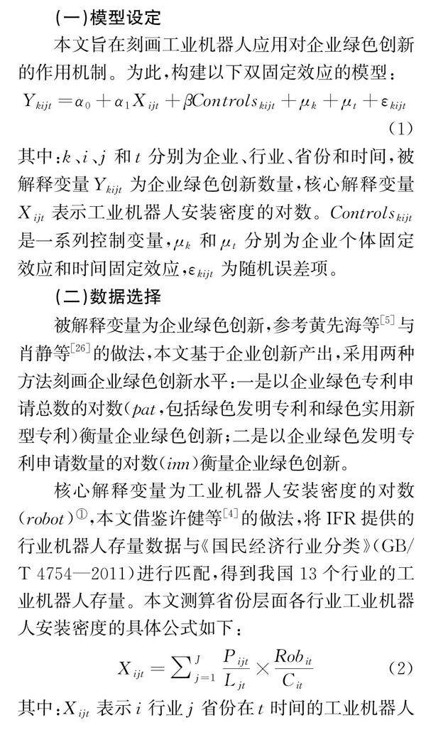 摘 要: 基于2006—2019年中国工业机器人数据与上市公司绿色专利数据,首次细致刻画了工业机器人应用对企业绿色创新的作用渠道。研究发现:一是工业机器人应用能显著提升企业绿色创新水平,多重内生性检验与稳健性检验也证实了该结论;二是工业机器人应用通过信息技术、人力资本和政府支持三个渠道促进企业绿色创新,因而拓宽上述渠道可使工业机器人应用更为顺畅地推动企业绿色创新水平提升;三是工业机器人应用能有效推动绿色创新质量的跃升。(剩余18454字)