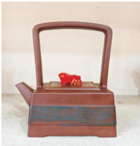 作为建党一百周年的致敬之作,《百年辉煌》这件作品直抒胸怀,通过壶钮的特别设计,直接点题。对于紫砂壶来说,壶钮就像人的眼晴一样,虽然小,但是具有画龙点睛的妙用。一个显眼的壶钮,是非常容易抓住人的眼睛的。《百年辉煌》这件作品的壶钮不仅独特吸睛,引发人们对作品的关注,更是主题的具象化表达,起到直抒胸臆、直接点题的作用。(剩余1862字)