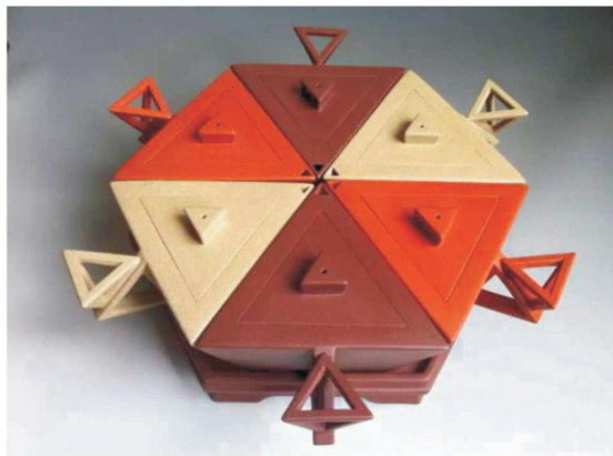 宜兴214221【关键词】紫砂壶;正三棱柱;空间造型;创新【摘要】创新是传统艺术赛续发展的源动力,也是紫砂茶器从明朝发展至今的关键。本文以原创作品《三才六合》为例,阐述了造型创新的重要性。此套壶以现代几何美学为前提,以五色土为原料,形成了东方美学与几何空间美学的强烈碰撞,充满了艺术魅力。