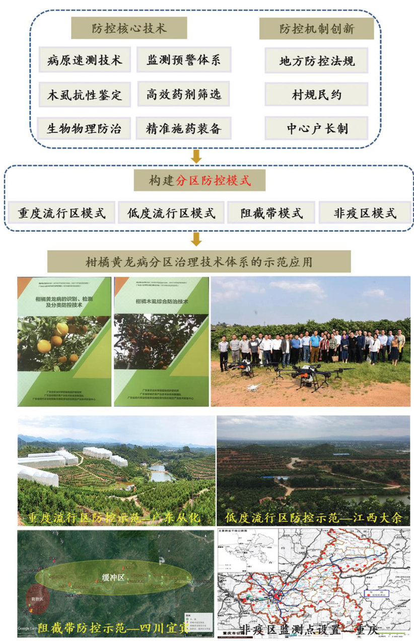 Abstract: Citrus Huanglongbing (HLB) is currently the most devastating disease in global citrus production,causing severe economic losses to the industry. The inability to achieve pure in vitro culture of the pathogen has hindered understanding of its pathogenic mechanisms,and no effective curative treatments or resistant cultivars are yet available. Conventional control strategies mainly rely on three core measures:using disease-free nursery trees,implementing areawide coordinated management of the citrus psyllid (Diaphorina citri),and prompt removal of infected trees. Since the initiation of the“ 13th Five-Year Plan”,collaborative efforts led by organizations such as the National Citrus HLB Integrated Prevention and Control Collaborative Inovation Alliance have facilitated in-depth research on key technical challenges and regional management models. Significant progress has been made, and the demonstration and application of these technical models have shown promising results. This paper summarizes these technical approaches and practical experiences to provide guidance and reference for HLB control in citrus-producing regions.