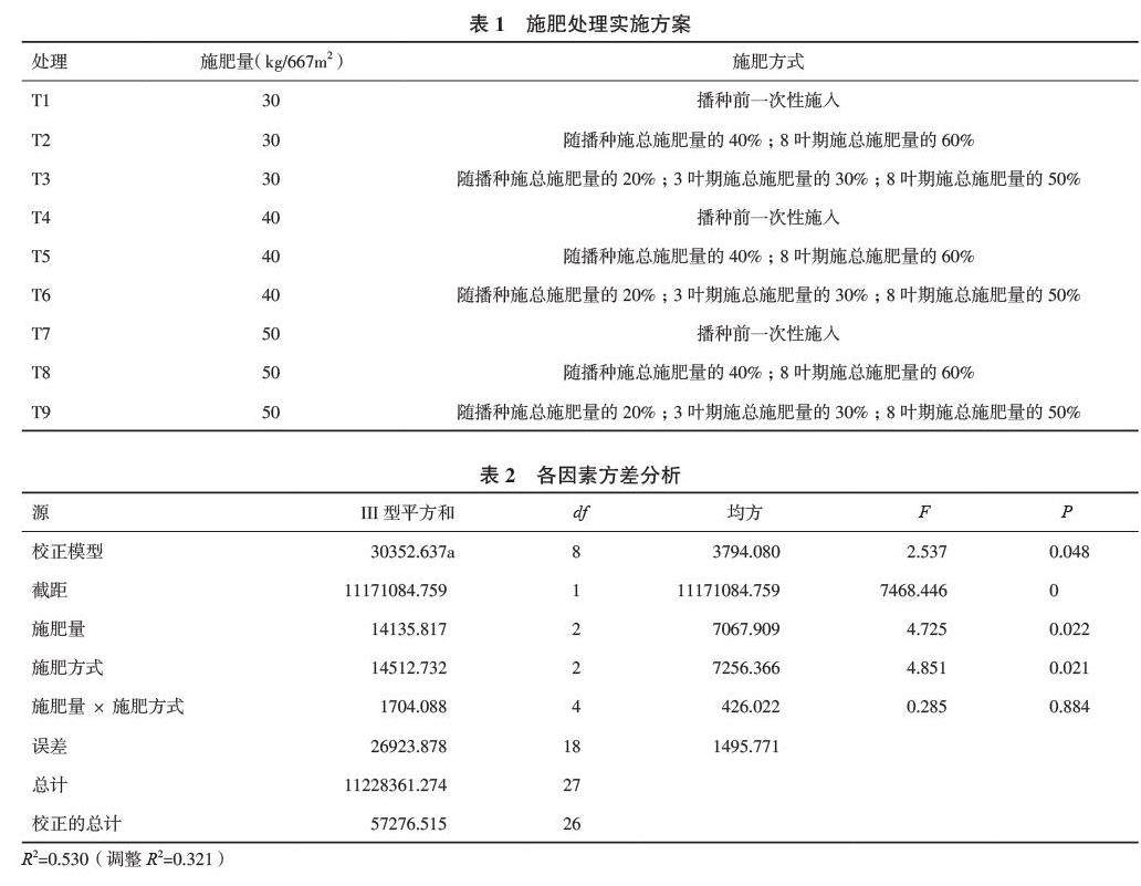 施肥量及施肥方式对夏玉米产量及相关性状的影响