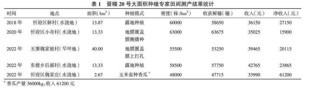 关键词:玉米品种;晋糯20号;特征特性;栽培技术