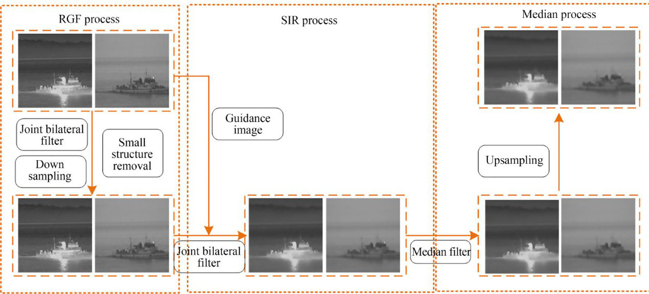Abstract:To address the issue of edge and detail information degradation in infrared and visible image fusion caused by limitations such as information loss and data redundancy,a novel approach is presented. Traditional multi-scale domain fusion methods often result in the loss of edge information in both infrared and visible images.This study proposes a hybrid multi-scale decomposition model (HMSD) integrated with an enhanced pulse-coupled neural network (PCNN) for infrared and visible image fusion. The HMSD model,developed by combining the characteristics of fast alternating guided filtering(FAGF)and Gaussian filtering (GF),decomposes the source images into a base layer and three feature maps,each capturing both fine and coarse structures. The fusion of the base layers is performed using a nuclear norm minimization(NNM) fusion rule,while the fusion of the feature maps employs the improved PCNN and regional energy-based rules. Experimental results demonstrate that the proposed method achieves average improvements of 47.6% , 5.2% , 6.4% , 9.4% , 5.3% ,and 27.3% across spatial frequency, average gradient,correlation coeficient,information entropy,and standard deviation metrics,respectively. This method not only preserves the edge and texture information of the source images but also significantly enhances the visual quality of the fused images..