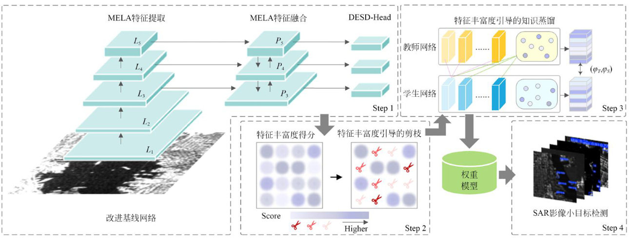 Key words: SAR image; small object detection; ultra lightweight;multi branch eficient layer aggregation;enhance shared detection head;pruning and knowledge distillation