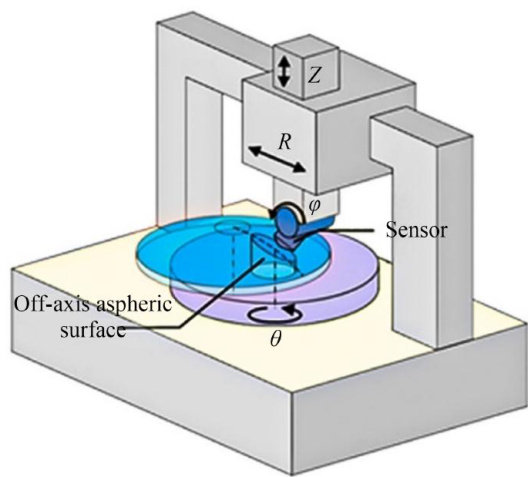 Abstract:The asymmetrical shape of the of-axis aspheric surface and the nonlinear change of its surface curvature bring challenges to the high-precision measurement of surface shape.In order to solve the problem that existing off-axis aspheric surface shape measurement methods were highly dependent on precise initial alignment of the test piece and showed poor adaptability to curvature variations,we proposed a spatially-constrained diferential confocal adaptive measurement method to achieve adaptive and high-precision measurement of off-axis aspheric surfaces without initial pose dependence. First,based on the translationrotation scanning measurement principle and the demonstrated performance of diferential confocal technology in anti-surface inclination accurate fixed focusing,we developed a spatial constraint model incorporating both distance and tilt angle parameters between designed measurement points and actual test locations.