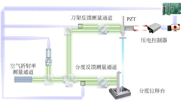 Abstract: To addressthe issue of the decline in micro-positioning accuracy caused by the hysteresis nonlin earity characteristic of the piezoelectric ceramic driver during the engraving process of the planar grating engraving machine,a composite control error-compensation method based on the segmented Prandtl - Ishlinskii(PI)model was proposed to enhance the indexing positioning accuracy and stability of the grating engraving. A set of error-monitoring and correction systems for grating micro-positioning with a certain degree of accuracy was designed. By constructing a segmented PI model to describe its nonlinear behavior, the hysteresis characteristics of the piezoelectric ceramic actuator were identified using the least-squares method. The inverse model was used as a feedforward compensation link,combined with closed-loop feedback control to form a composite control strategy,thereby achieving dynamic error correction.Experimental data show that,compared with before adding the PI inverse model feedforward compensation,the positioning error of the grating line has been reduced from ±20nm to within ±10nm . Ensure the consistency of the engraved grooves,apply the calibration of the grating etching division degree to correct the positioning error,providing reliable technical support for the preparation of high-density gratings.Future research willfocus on integrating and optimizing inteligent algorithms to further improve positioning accuracy,as well as exploring the expansion application of this technology in curved surface gratings and variable grating pitch etching.
