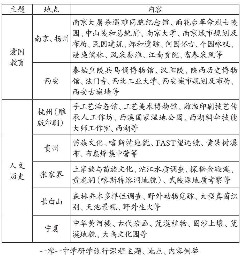 北京一零一中学将国家课程理念与学校实际相结合,以“担当人才培养”和“自我教育理念”为核心要素,从学生多元发展和个性化需求的角度,融合社会实践、研究性学习,以深度体验和探究为主要形式,开展研学旅行的探索与实践。自2010年至今,开展了云南、成都、桂林、海南、杭州、南京、内蒙古、青岛等二十余条线路的研学旅行。(剩余2655字)