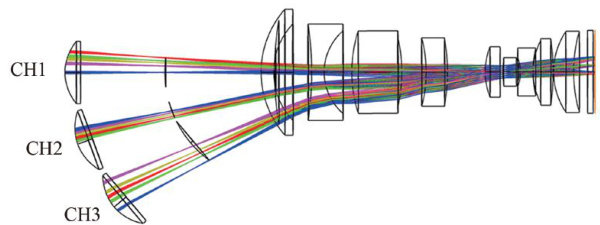 Abstract:The compound eye vision system features a wide field of view,smallsize and sensitivity to motion, making it particularly suitable for wide-area moving target detection,recognition and optical autonomous navigation. In this study,to achieve RGB three-channel color imaging of the bionic compound eye systems, an optical simulation of the bionic compound eye color imaging system was conducted and a prototype was developed. This prototype contains 16 sub-eye systems,with a focal length of 15mm for each sub-eye system. Based on this prototype,performance verification experiments of bionic compound eye color imaging were carried out. The experimental results show that the field of view of each sub-eye is 22.62∘ ,and the total field of view reaches 85.02∘ . At a distance of 60cm , its resolution reaches 6lp/mm ,with good imaging contrast. Additionally,scene imaging experiments were performed to validate its imaging performance. These results demonstrate that the bionic compound eye color imaging system can meet the requirements fordetecting,three-dimensional positioning,and recognizing wide-area targets in complex environments. Key words: compound eye vision system; compound eye color imaging; compound eye optical design; sub image position adjustment
