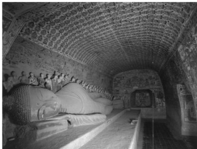 莫高窟第148窟由出身望族的李大宾营建于大历十一年(776年),在陷蕃前夕闪烁着大唐盛世的华彩与家国情感的光辉。②这座家窟(图1)在敦煌石窟营建史上具有划时代的意义,不仅开创了涅槃窟的形制,还在南北壁各开一龛(图2一图3),独特的窟形在敦煌仅此一例。(剩余14182字)