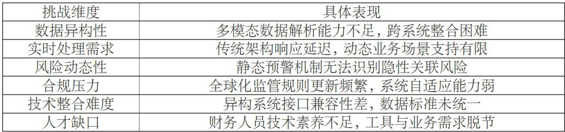 当前财务信息化系统普遍依赖传统架构,以结构化数据为基础构建标准化流程,但面对非结构化数据激增与动态业务场景时,数据处理能力明显滞后。业务端产生的文本、图像及音视频等多模态信息难以被现有系统有效解析,导致“数据孤岛”现象加剧,跨部门协同效率受限。传统规则引擎对复杂交易行为的判断缺乏灵活性,难以适应快速变化的市场环境,尤其在供应链金融、跨境结算等领域,流程延迟与人工干预频发。(剩余4803字)