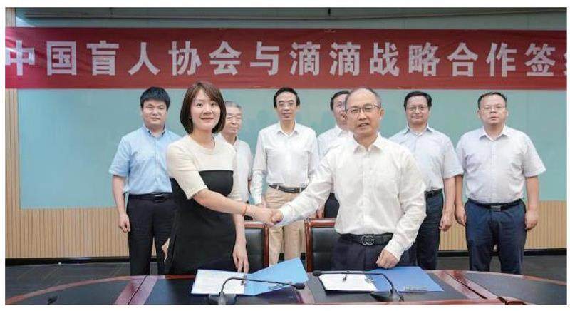 7月23日,滴滴与中国盲人协会战略合作签约仪式在中国残联举行,并宣布“盲人无障碍出行服务”全国上线。中国残联副主席程凯,中国盲协主席李庆忠、副主席何川,滴滴企业社会责任总监罗真真以及中国残联维权部、宣文部、组联部、信息中心等部门有关负责人出席签约仪式。
