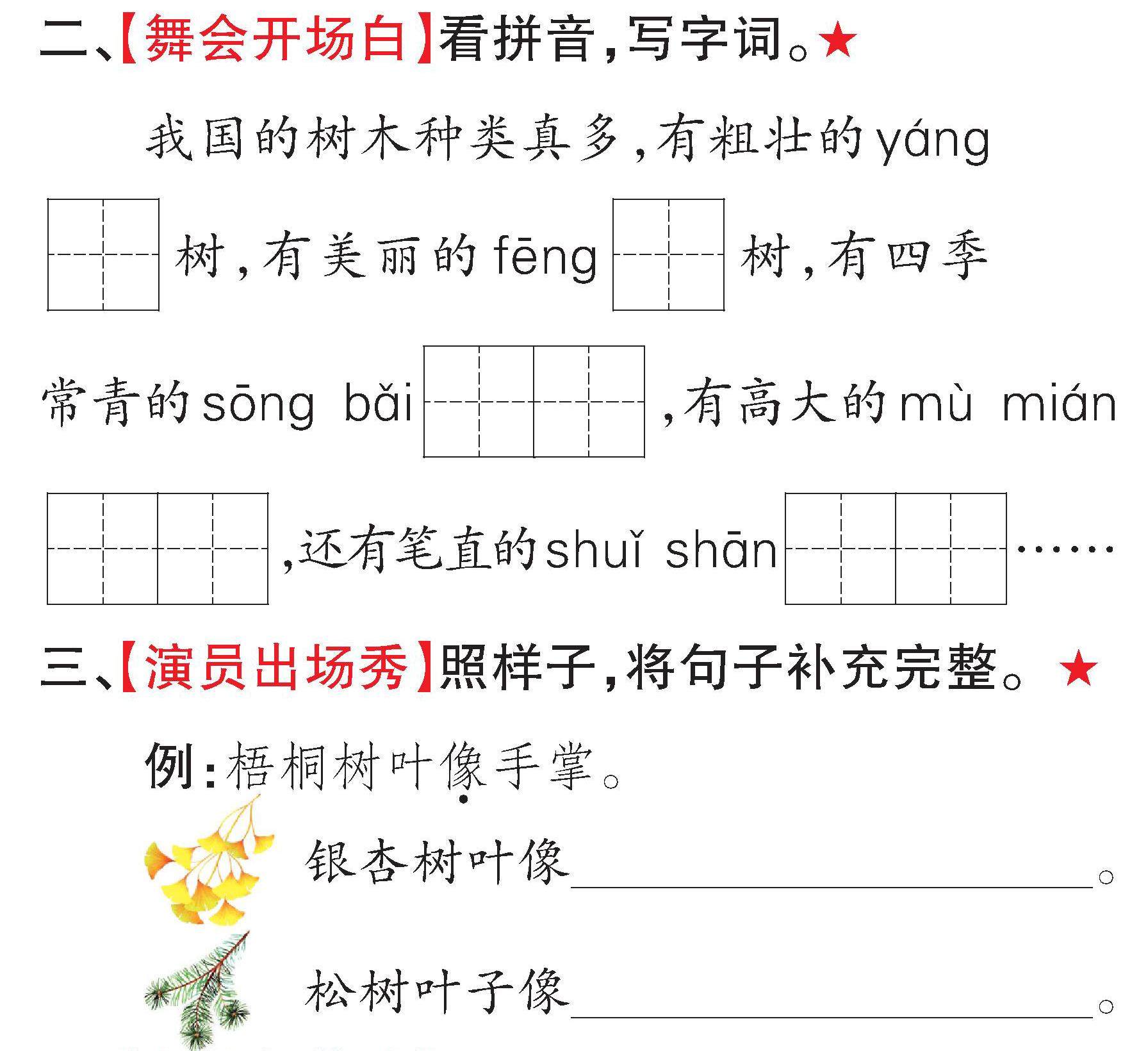 ③枫树(fēnɡ) ④北疆(jānɡ)