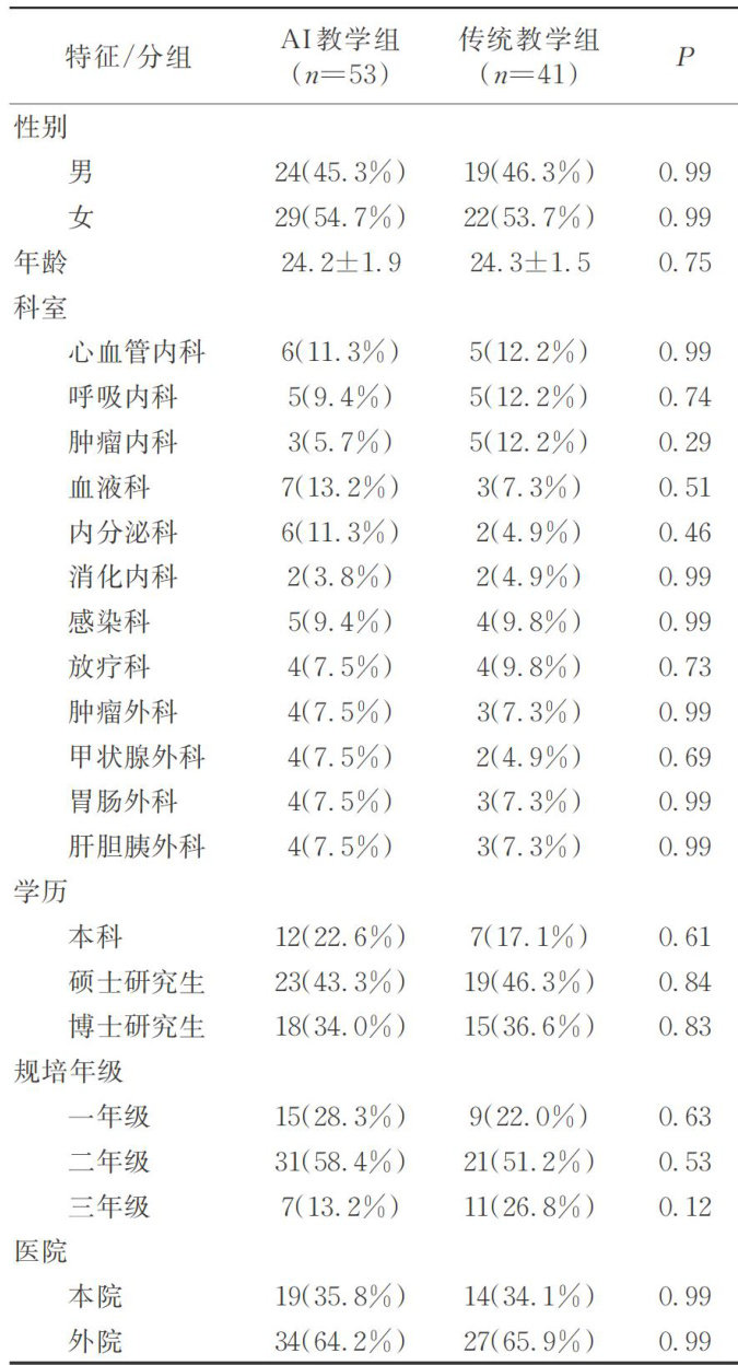 Abstract: Background With the rapid development of positron emission tomography (PET) technology in Nuclear Medicine,non-imaging residents face significant dificulty in mastering core competencies through short-term standardized training. Consequently,effectively leveraging emerging technologies to enhance training outcomes has become an urgent issue to address.Objective The study aims to evaluate the effectiveness of artificial intelligence (AI)-assisted teaching in enhancing FDG PET/CT image interpretation and clinical decision-making skils for non-imaging residents based on the diagnosis ofFDG PET/CT in lung cancer and staging imaging teaching. Methods A total of 94 non-imaging residents undergoing the standardized trainingat the First Afiliated Hospital of Zhejiang University Schoolof Medicine from June 2O23 to May 2024 were selected and randomly divided into the control group ( n =53,using AI-assisted teaching via the uAI platform)and the observation group( n=41 ,using traditional teaching mode).Outcomes were assessed through theoretical assessments,skills evaluation,questionnaires,and satisfaction surveys.Results The observation group achieved significantly higher scores than the control group in both theoretical assessments (24号 (80.5±7.8 VS. 79.4±5.8 , P<0.05 )andskills evaluation( 79.4±5.8 Vs. 76.6±5.5 ,P<0.05). Satisfaction survey indicated that the satisfaction with the teaching efect was significantly higher in the observation group (90.5% vs. 58.5% , P<0.05 ),with markedly better total questionnaire scores ( P< 0.0001).Conclusion AI-assisted teaching effctively enhances PET/CT image interpretation and clinical decision-making skills of non-imaging residents.