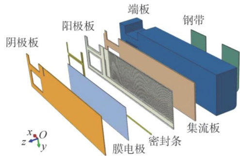 关键词:燃料电池;等效刚度模型;封装力;孔隙率;接触电阻;钢带间距 中图分类号:TM911 文献标志码:A 文章编号:1673-6397(2025)04-0016-10 引用格式:,等.钢带间距对质子交换膜燃料电池堆封装力的影响[J].内燃机与动力装 置,2025,42(4):16-25. LIU Haitao,BAI Shuzhan,WU Minghua,et al. The influence of steel strip spacing on the clamping load of a proton exchange membrane fuel cell stack[J]. Internal Combustion Engine & Powerplant,2025,42 (4):16-25.