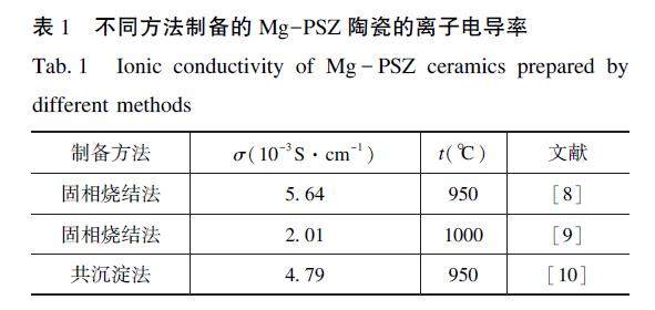 基于水解/球磨工艺制备高离子电导率Mg-PSZ陶瓷