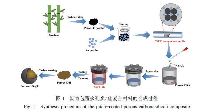 在竹炭孔内发生置换反应制备多孔炭/硅负极材料