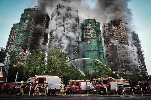 2025年11月26日,香港大埔宏福苑火灾现场。图/中新