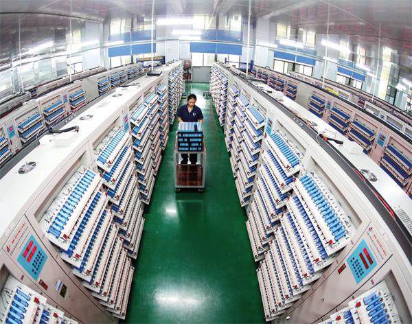2025年11月15日,安徽省淮北市一家能源科技公司的生产车间,工人们正在加工生产锂电池产品。图/中新