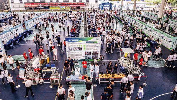 2025年5月7日,“才聚湾区·智造未来”广东省人工智能与机器人产业技能人才培养交流会暨技能人才双选会在东莞举办。活动以“政、校、企”三方联动为核心,搭建了“交流会、人才双选会、成果展示”一体化平台。图/视觉中国