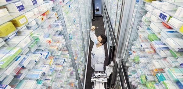 浙江省湖州市一家医院内,药师在智慧药房核对药品。图/中新