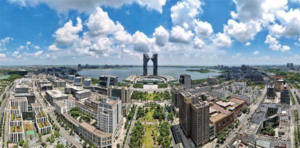 位于上海浦东新区的自贸区临港新片区滴水湖畔的西岛中银金融中心项目。图/新华