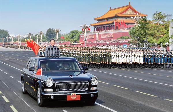 2025年9月3日,纪念中国人民抗日战争暨世界反法西斯战争胜利80周年大会在北京天安门广场隆重举行。中共中央总书记、国家主席、中央军委主席习近平检阅受阅部队。图/新华