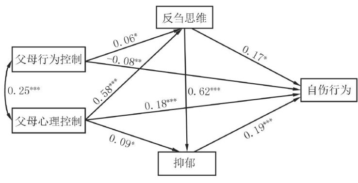父母控制与青少年非自杀性自伤:反刍思维和抑郁的链式中介作用