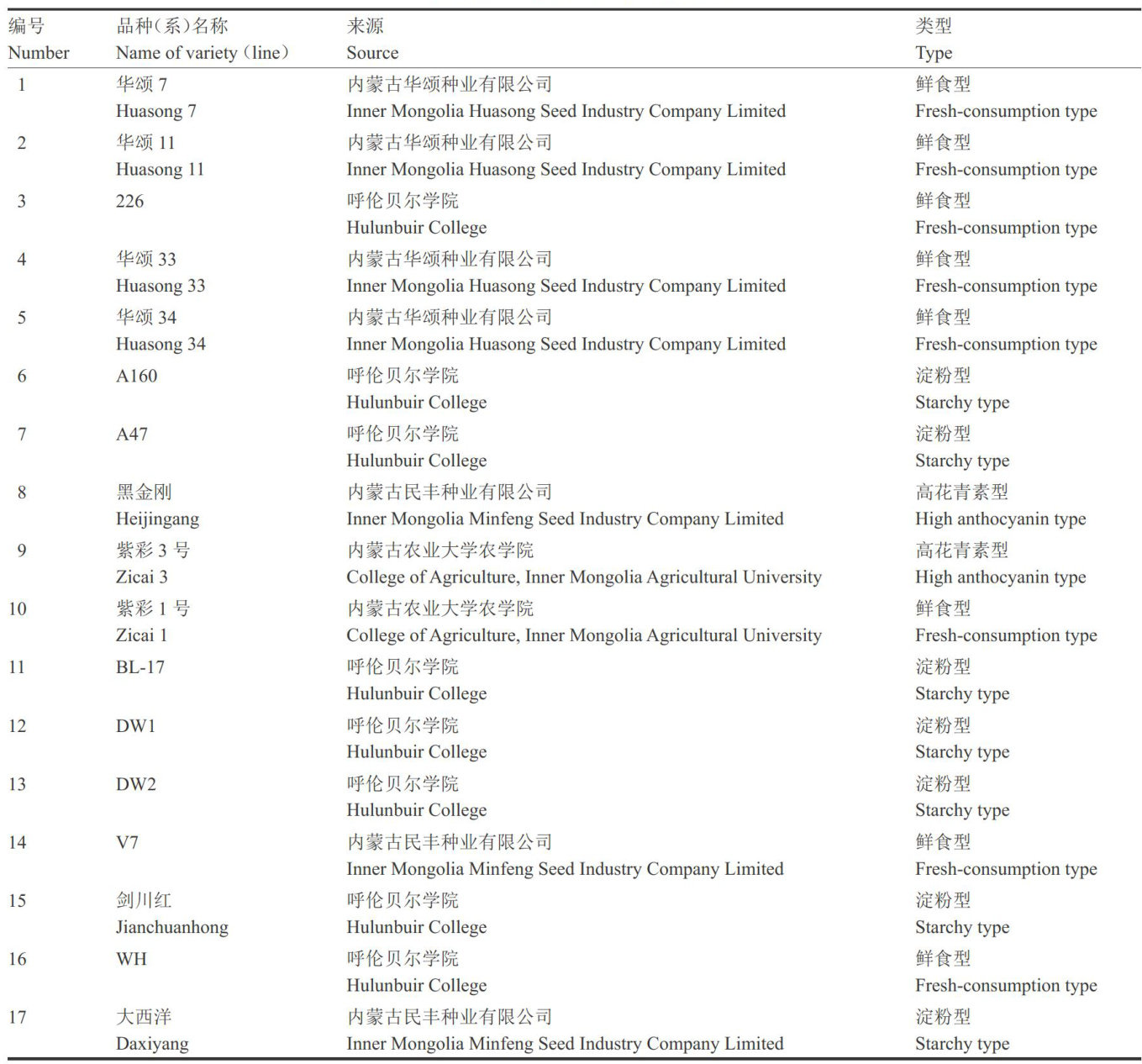 Abstract:Inorder toscreenoutsuperior potato varieties(lines)suitable forcultivationin Hulunbuir,17potato Varieties (lines)were usedas the testmaterials.Byobserving and recording majormain agronomic traits,a comprehensive evaluation was conducted using coefficientofvariationanalysis,principalcomponentanalysis,clusteranalysisand membership functionanalysis.Theresults showed that thecoeficientof variationamong the17potato varieties(lines)ranged from 9.44% to 26.78% ,with the single plant yield exhibiting the greatst variation.The correlation analysis results showed that the numberof tubers per plant was significantly positivelycorrelated with the yield per plant.The principal component analysis results showed that the contribution rate of component l,component 2and component 3 were 33.939% 28.742% and 16.939% ,respectively.The clusteranalysis showed that when the euclidean distance was 10,the17 potato varieties (lines)could be divided intoseven groups.The membership function analysis results showed that thecomprehensive rankings ofV7,Huasong7,BL-17andDW2 wererelativelyhigh.Inconclusion,V7,Huasong7,BL-17andDW2posesexcellent germplasm resourcesand breeding potential for he Hulunbuir region.