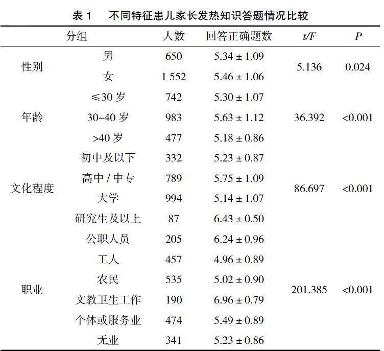 家长对婴幼儿发热知信行现状分析
