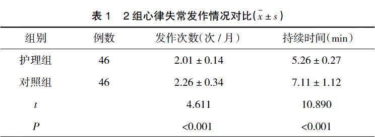综合护理干预在冠心病心律失常患者中的应用效果分析