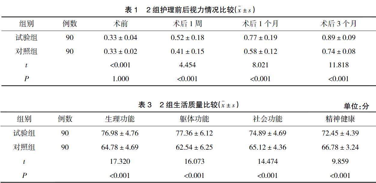 【摘要】 目的 观察思维导图引导康复护理对白内障超声乳化手术患者术后视力恢复和并发症发生率及生活质量的影响。方法 以丰顺县中医院2020年1月—2021年1月诊治的180例白内障超声乳化手术患者作为研究对象,根据不同护理方式分为试验组与对照组,每组90例,对照组采用常规护理,试验组采用思维导图引导康复护理。(剩余5132字)
