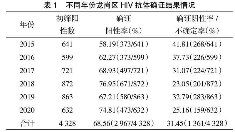 龙岗区4 328份HIV抗体初筛阳性样本确证实验结果分析