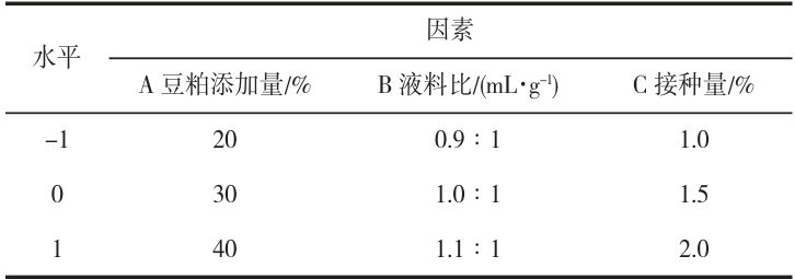 30% ,a liquid-to-solid ratio of 1.0:1 ⟨mL/g⟩ , an inoculation volume of 1.5% ,a fermentation duration of 5d ,and a fermentation temperature of 28°C .Under these conditions,the neutral protease activity attained a level of ( 1306.53±180.29 ) U/g ,representing a 1.47 fold increase compared to the pre-optimization level.