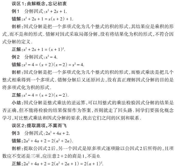 因式分解是代数式恒等变形的基本形式之一,其有着广泛的应用.但部分同学在学习因式分解的过程中,常常会出现各种各样的错误.今天,我们就走(剩余52字)