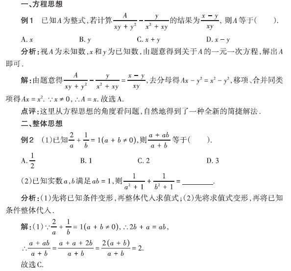 巧用数学思想解分式问题