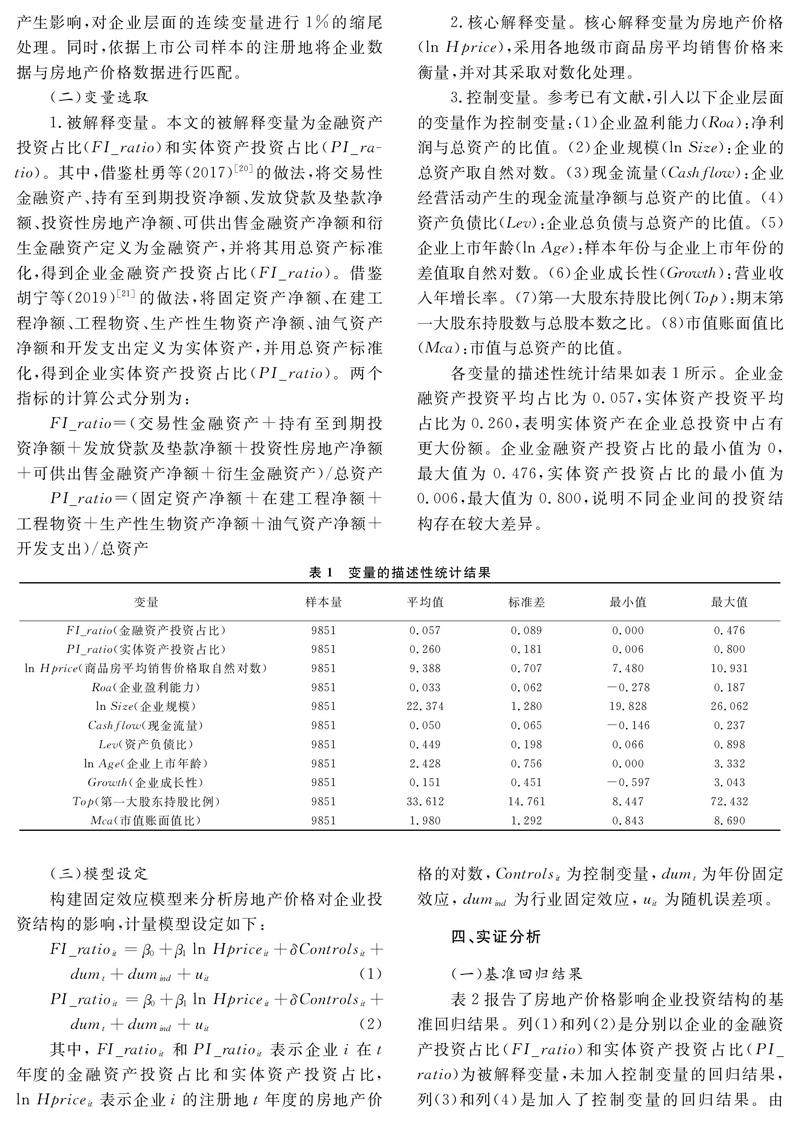 摘 要:依据我国2009—2020年微观企业面板数据,运用固定效应模型,考量房地产价格对企业投资结构的影响。结果显示,房地产价格对企业金融资产投资占比正向影响显著,对企业实体资产投资占比负向影响显著;房地产价格通过融资约束效应、劳动力成本效应与套利动机效应对企业投资结构产生影响。与西部地区企业相比,房地产价格对东部、中部地区的企业投资结构影响更显著;与非国有企业和中小型企业相比,房地产价格上涨对国有企业和大型企业金融资产投资占比的促进作用更弱。(剩余12640字)