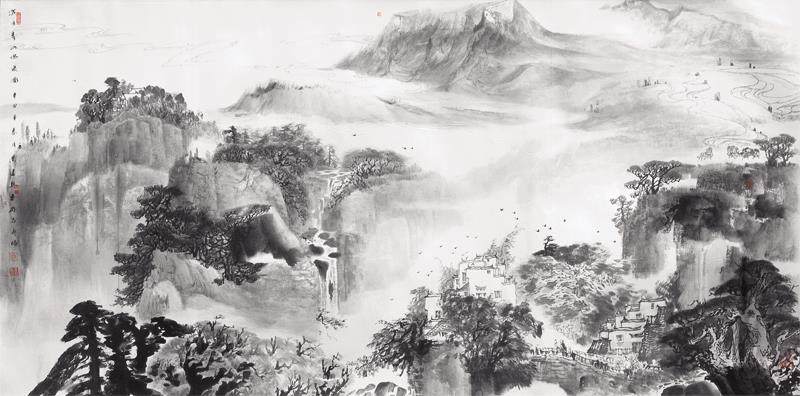 《满目青山鸣泉图》 叶建新 中国画 126x252cm 2021年