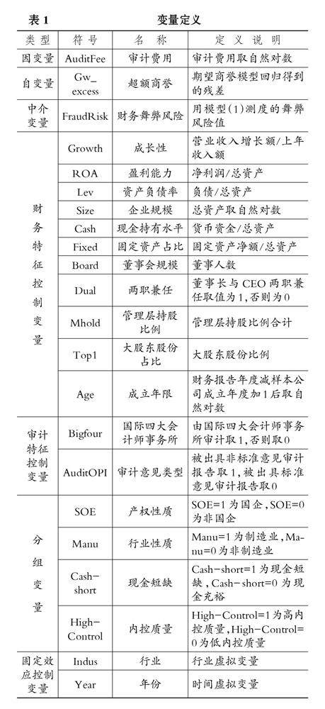 超额商誉、财务舞弊风险与审计费用