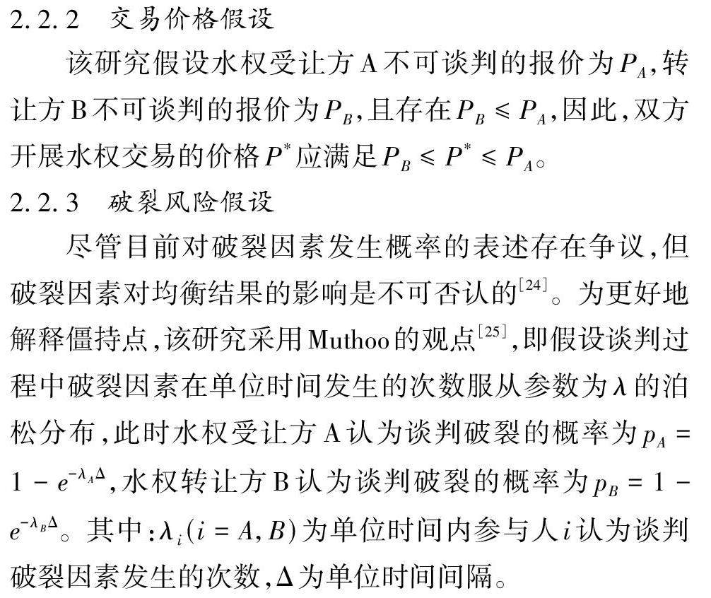 关键词 水权交易;演化博弈;议价模型;破裂风险;交易价格