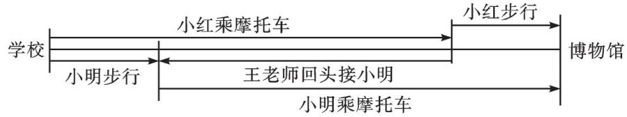 某天,王老师计划带着小明、小红两名同学一起从学校出发,前往60km 外的博物馆参观。然而,他们的交通方式选择有些受限—一只有王老师拥有的一辆摩托车,而这辆摩托车每次仅能搭载一人。小明和小红如果依靠自己的双脚前行,他们的步行速度都是 5km/h ,相比之下,摩托车的速度则比较快,能达到 55km/h 。(剩余2030字)