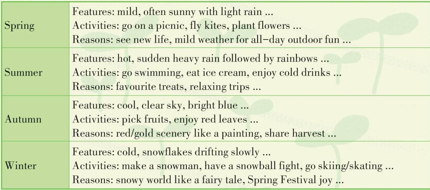 An online magazine is holding a writing competition on one’ s favourite season. Write a passage for the competition, including what your favourite season is, what this season is like, what you always do in this season, and why you like the season.